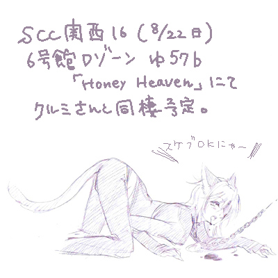 8/22SCC関西16は6号館D ゆ-57b「Honey Heaven」でクルミさんと同棲中です。